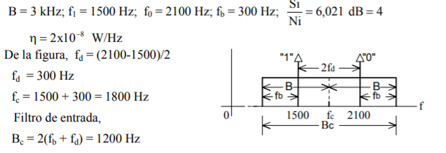 canal es de 3 kHz; las frecuencias de transmisión son f1 = 1500 Hz y f0 = 2100